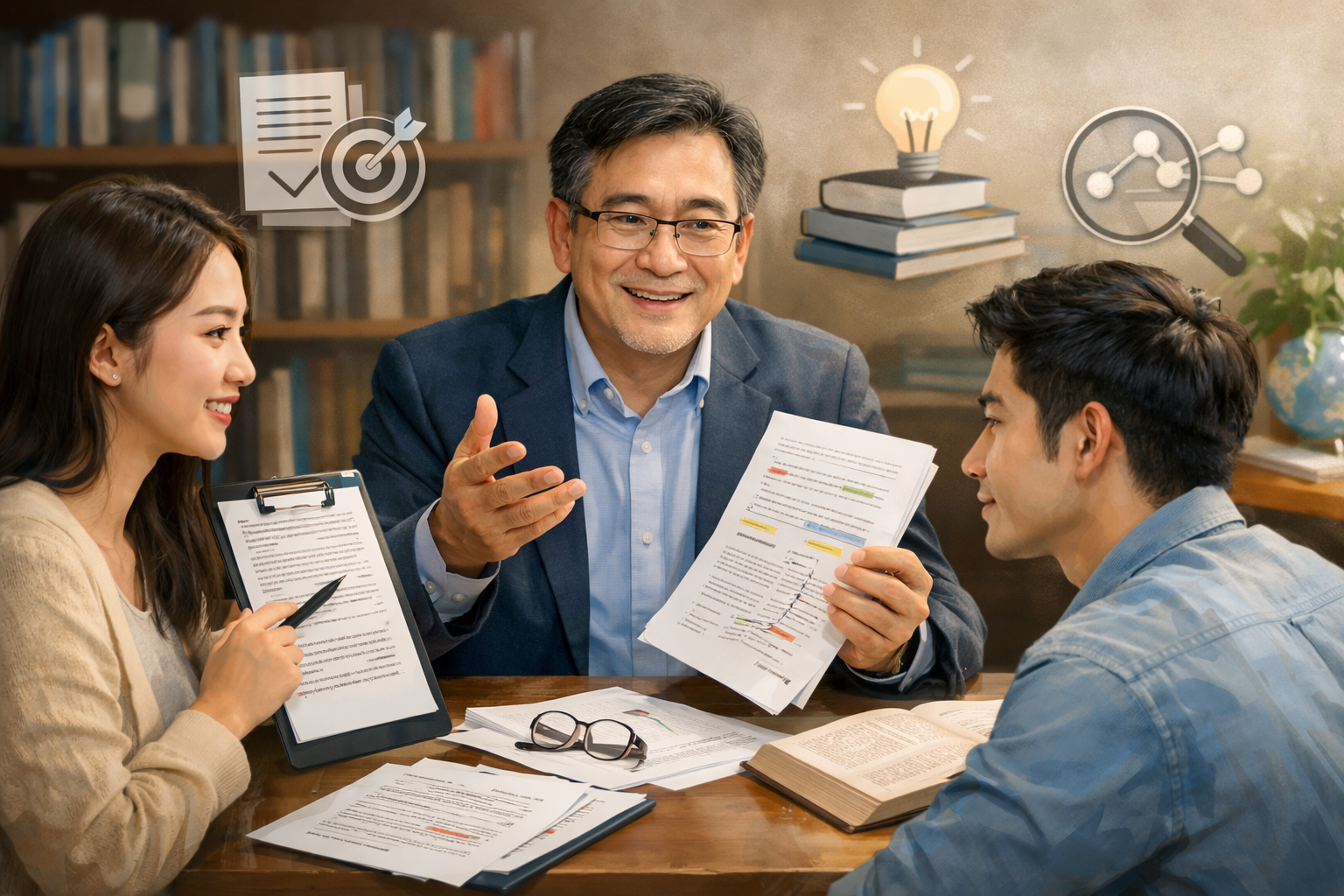 บริการนี้เป็นการวิเคราะห์หัวข้อวิทยานิพนธ์ที่นักศึกษาคิดขึ้นมา (หรือยังคิดไม่ชัด) โดยผู้เชี่ยวชาญด้านงานวิจัย เพื่อประเมินว่า